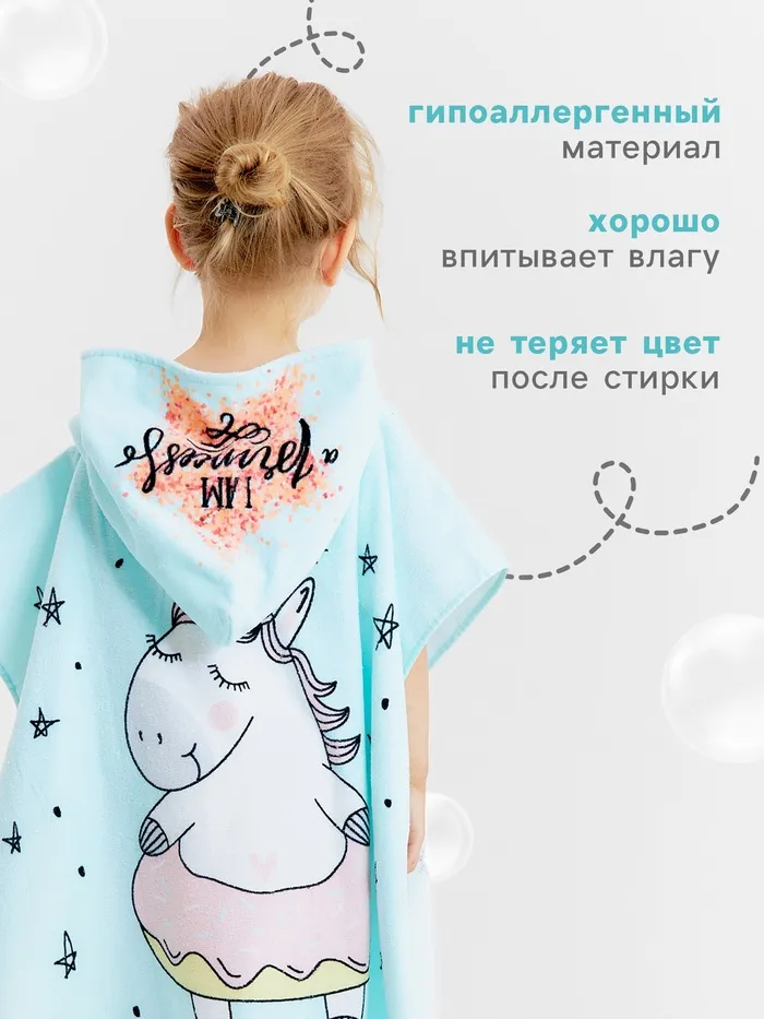 Полотенце-пончо детское махровое Крошка Я "Единорог", 60*120см, 100% хлопок, 300гр/м2 — Характеристики