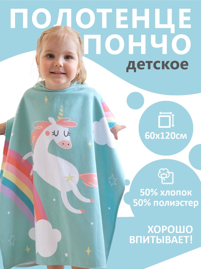 Полотенце - пончо детское махровое «Крошка Я. Единорог», 60×120 см, зелёное — Характеристики