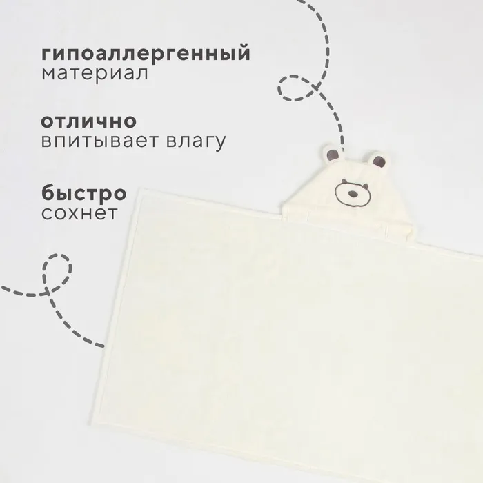 Полотенце с капюшоном Крошка Я, цвет белый, 67х120 см, 100% п/э, 280 г/м2 — Характеристики