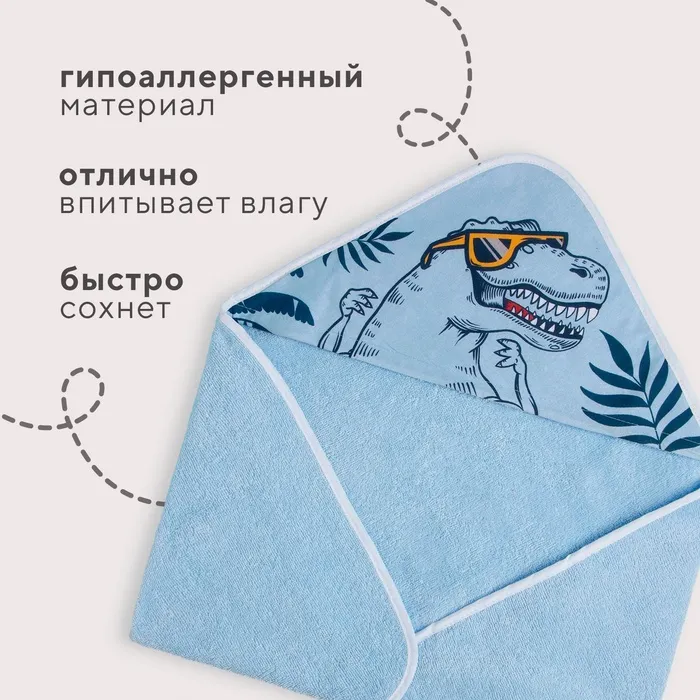 Полотенце уголок махровое Крошка Я "T-rex king", 75х75 см, 100% хлопок. 340г/м2 — Характеристики