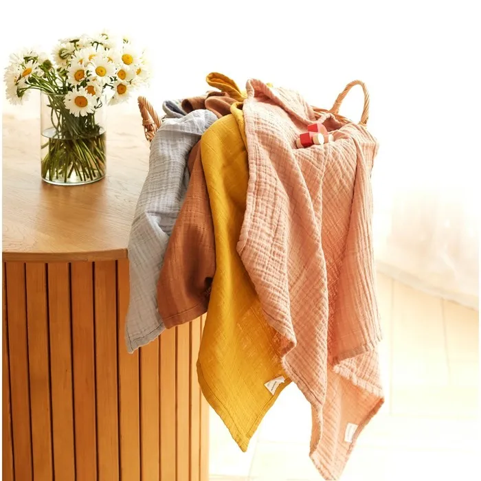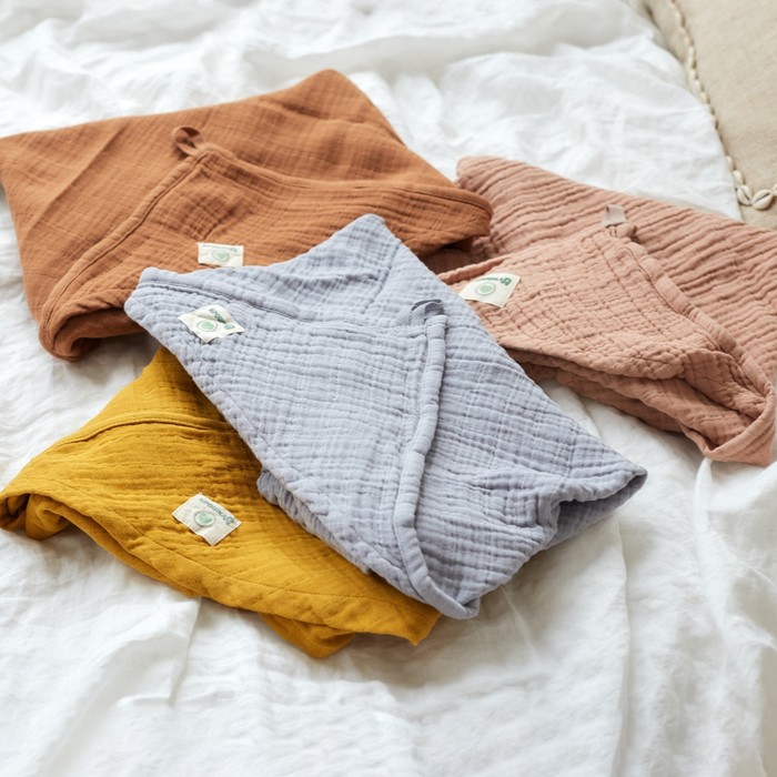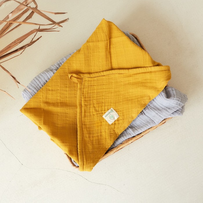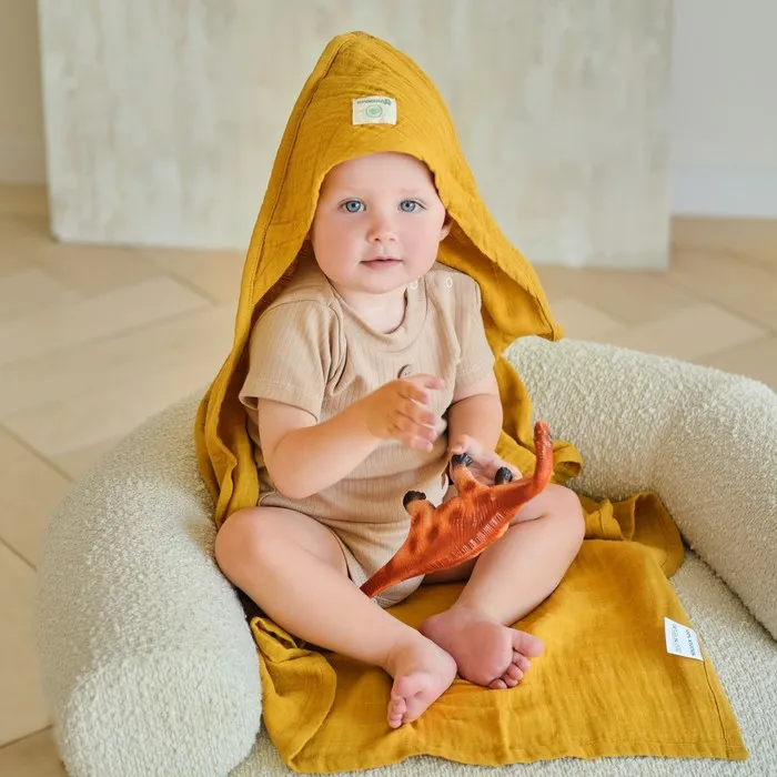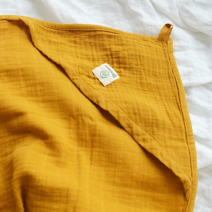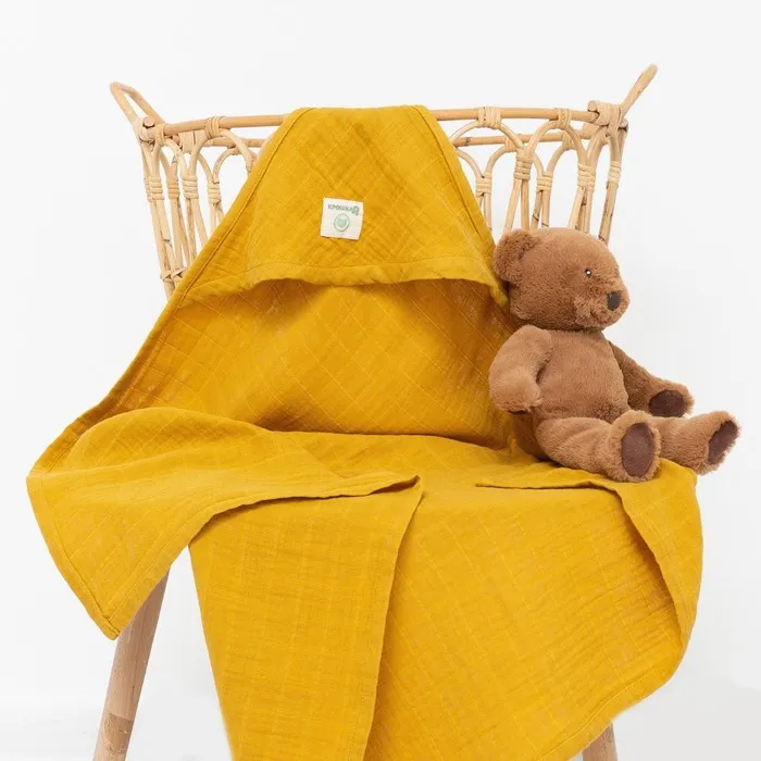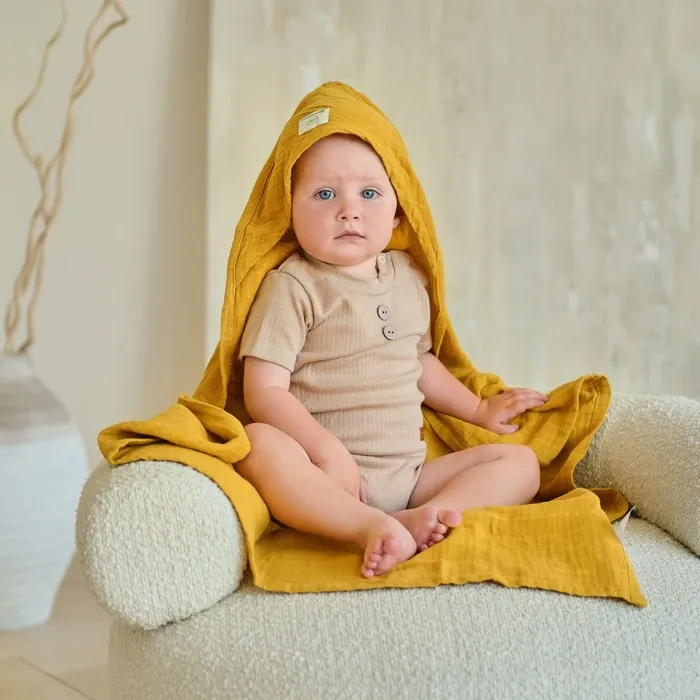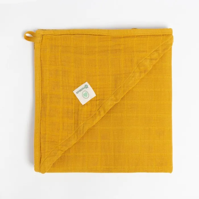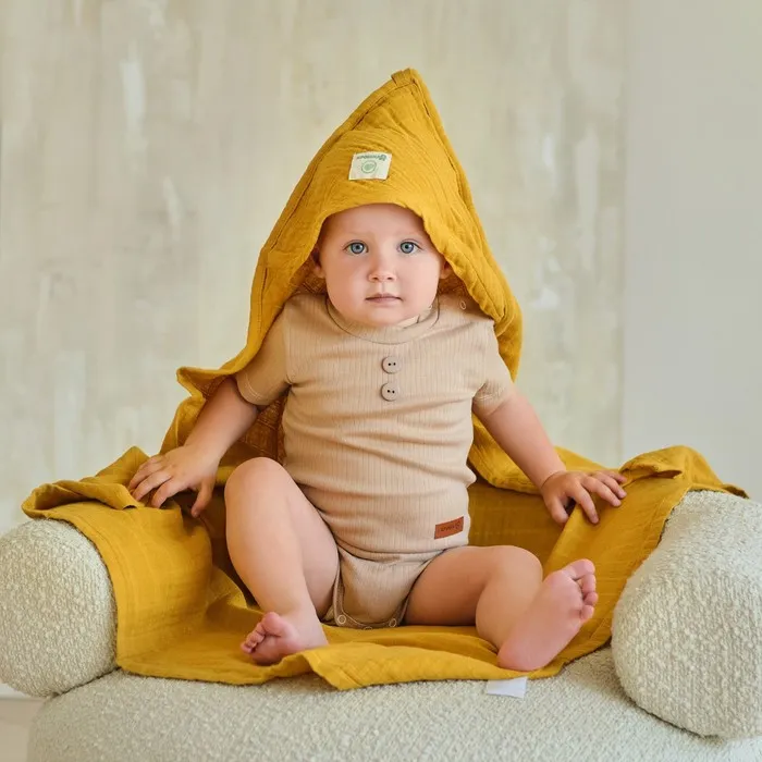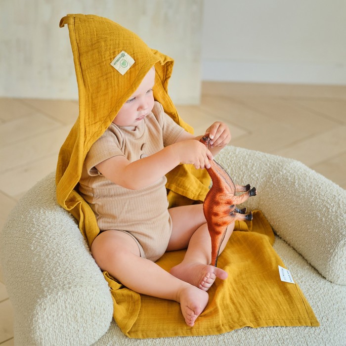 Полотенце уголок муслиновое Крошка Я, 75х75 см, цвет горчичный, 100% хлопок, 3-сл, 180 гр/м2 — Характеристики