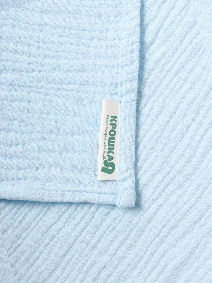 Мягкое и уютное муслиновое полотенце-уголок от бренда Крошка Я — это идеальный аксессуар для вашего малыша. Его нежный голубой цвет и удобный размер делают его незаменимым после купания или для уютного сна.