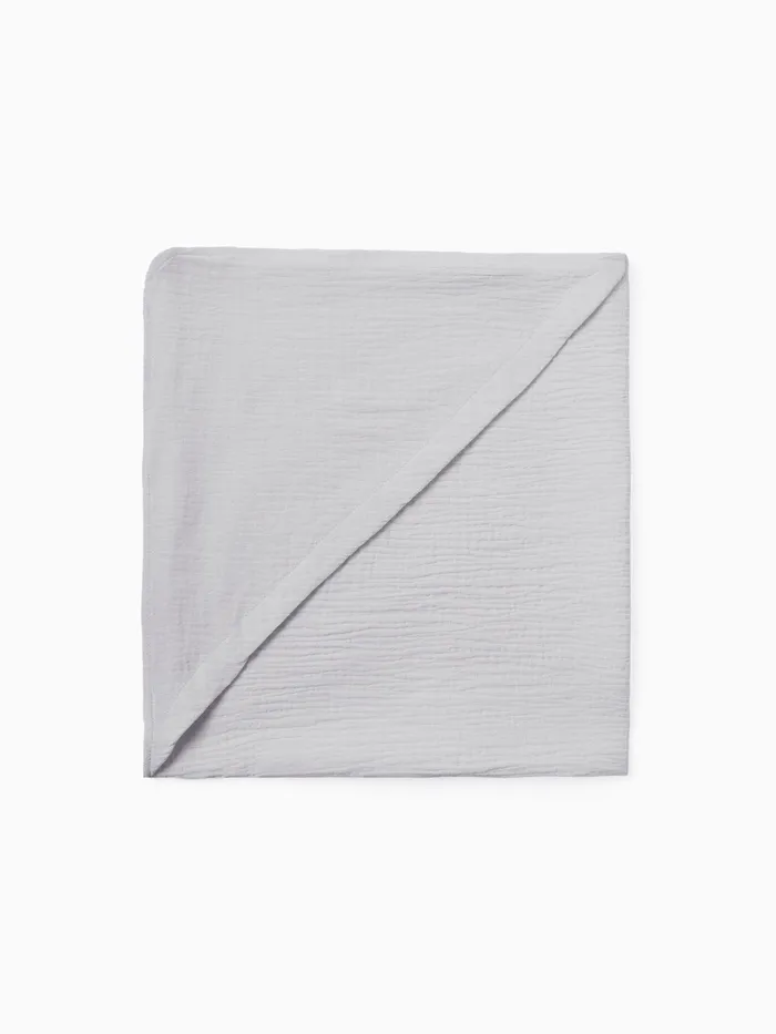 Полотенце - уголок муслиновое Крошка Я, 75×75 см, 100% хлопок, 120 г/м², серо-голубое — Характеристики