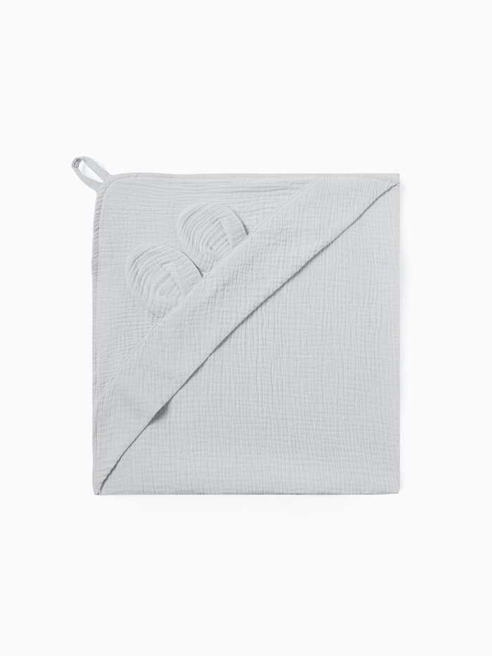Мягкое и уютное муслиновое полотенце-уголок от бренда Крошка Я — это идеальный аксессуар для вашего малыша. Его нежный серо-голубой цвет и удобный размер делают его незаменимым после купания или для уютного сна.