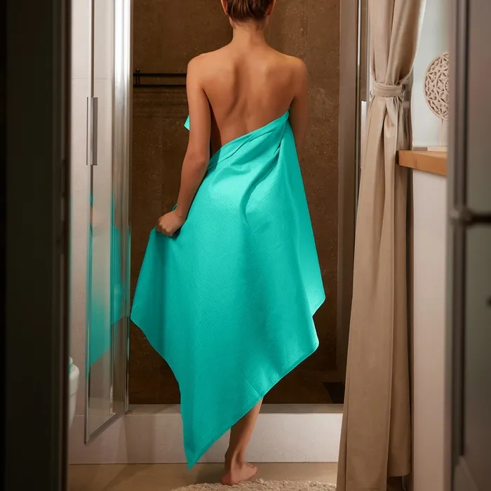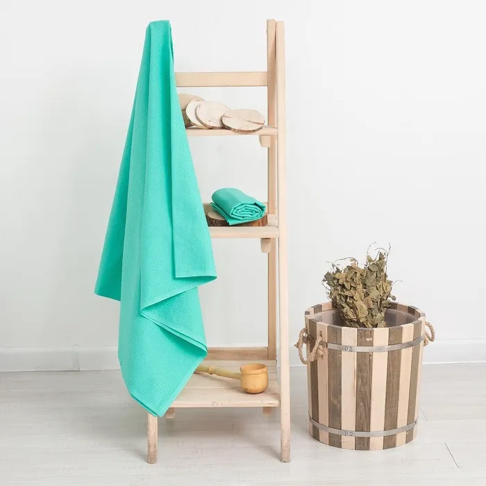 Полотенце вафельное банное Экономь и Я 80х150 см, цвет бирюзовый 100%хл, 200 гр/м2 — Характеристики