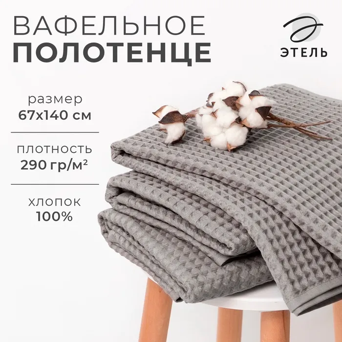 Полотенце вафельное банное Этель "Boho" 67*140 см, цв. светло-серый, 100% хл, 290 гр/м2 — Характеристики