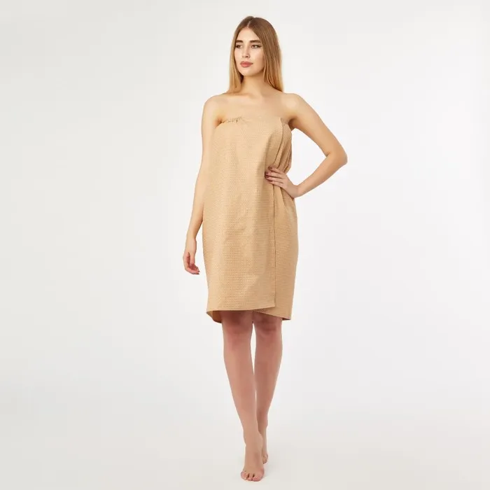 Полотенце вафельное для бани «Экономь и Я» (парео женское), 80х144 см, цвет бежевый