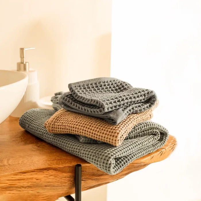 - Рельефная вафельная текстура – хорошо впитывает влагу, быстро сохнет.
