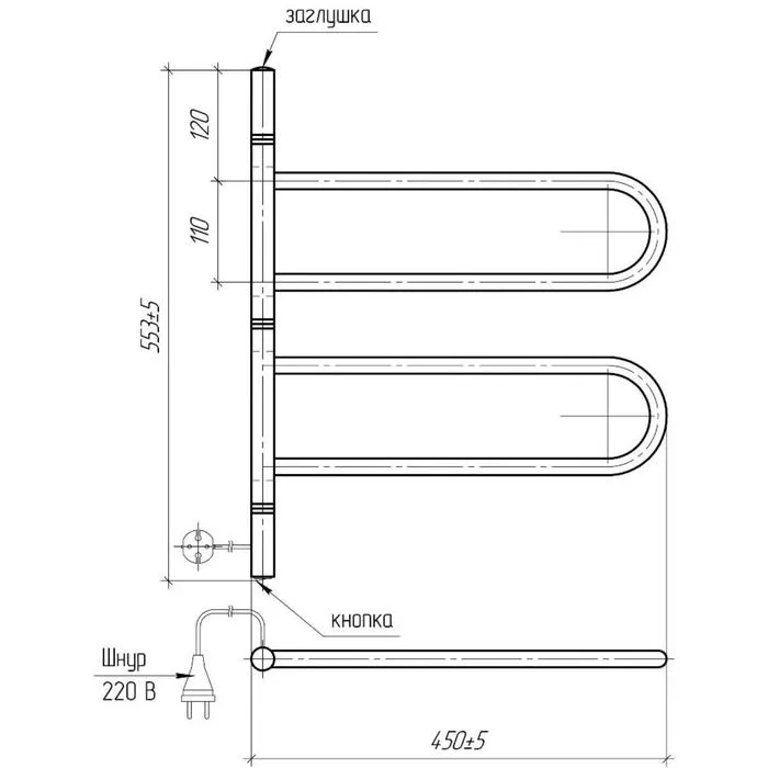 Полотенцесушитель электрический ТЕРА "Флюгер", 450х500 мм, поворотный — Характеристики