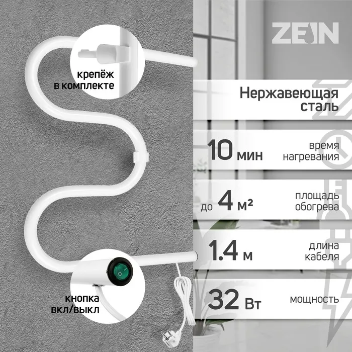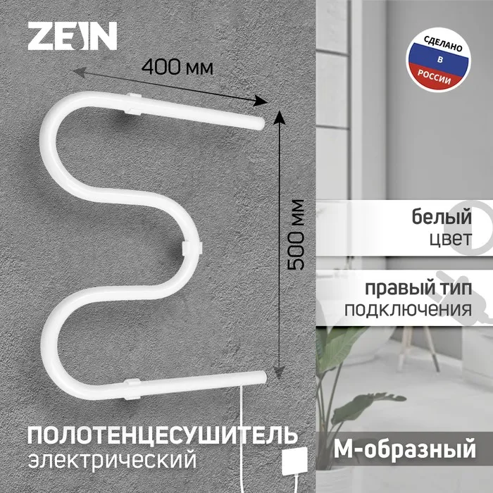 Электрический полотенцесушитель ZEIN PE-02 имеет М-образную форму и размеры 500x500 мм. Он сочетает в себе стильный дизайн и функциональность. Обеспечивает эффективную сушку полотенец.