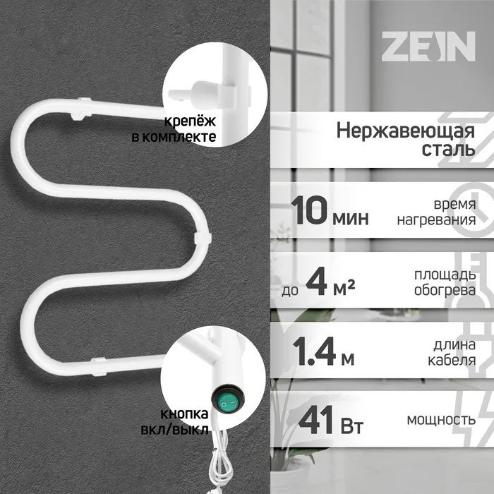 Электрический полотенцесушитель ZEIN PE-02 имеет М-образную форму и размеры 500x500 мм. Он сочетает в себе стильный дизайн и функциональность. Обеспечивает эффективную сушку полотенец.