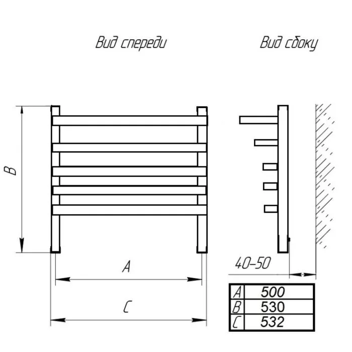 Полотенцесушитель водяной ТЕРА "Экстра-П", 500×600 мм, внутренняя резьба 1/2" — Характеристики