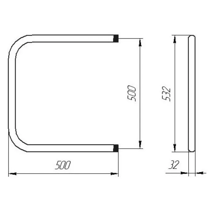 Полотенцесушитель водяной ТЕРА, П-образный, 500х500 мм, D=32 мм — Характеристики