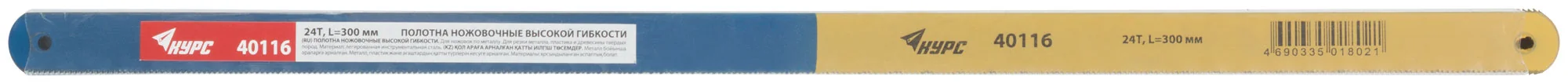 Полотна изготовлены из легированной стали и имеют каленый зуб с 24 TPI, что обеспечивает долговечность и высокую производительность при работе с различными металлическими материалами. Размер 300х12 мм делает их универсальными для большинства стандартных ножовок.