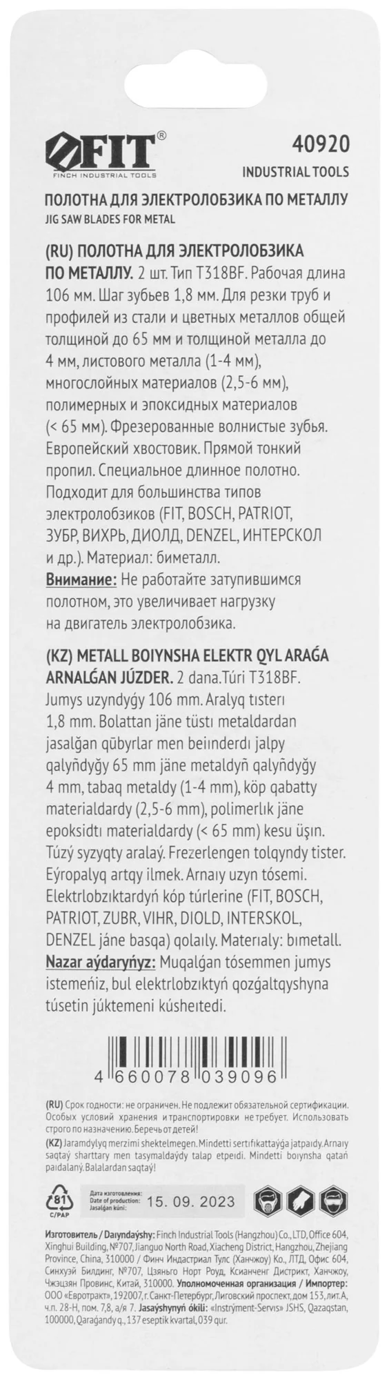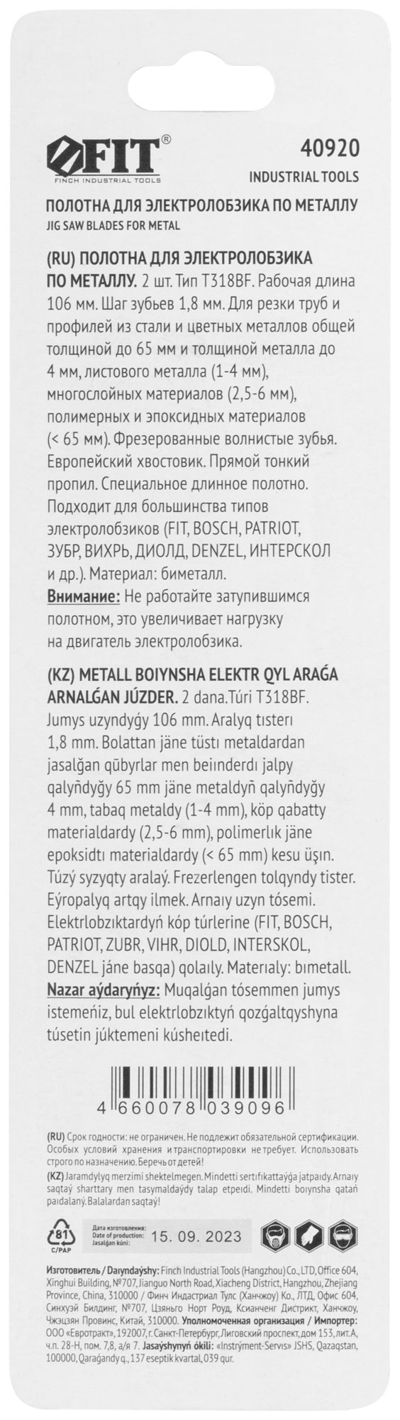 Выберите полотна Bimetal FIT 40920, чтобы обеспечить высокую производительность и точность в ваших проектах.