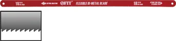 Конструкция полотна включает в себя биметаллический материал, где зубья изготовлены из быстрорежущей стали Р6М5, а основа выполнена из термообработанной высококачественной хром-ванадиевой стали. Это обеспечивает отличную гибкость и износостойкость, позволяя полотну выдерживать высокие нагрузки без разрушения.