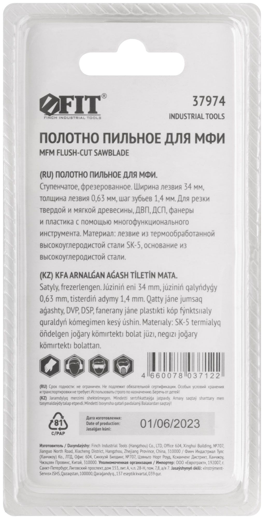 Выберите полотно пильное 34x0,63 мм от FIT, чтобы обеспечить качественные и аккуратные резы в различных материалах.