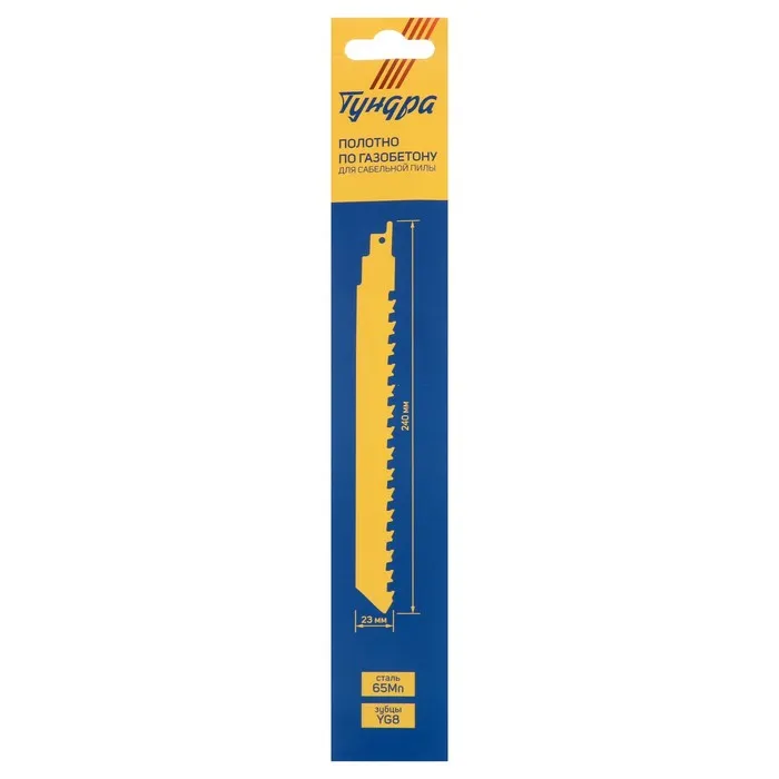 Полотно по газобетону для сабельной пилы ТУНДРА, сталь 65Mn, зубцы YG8, 240×23×1.5 мм — Характеристики