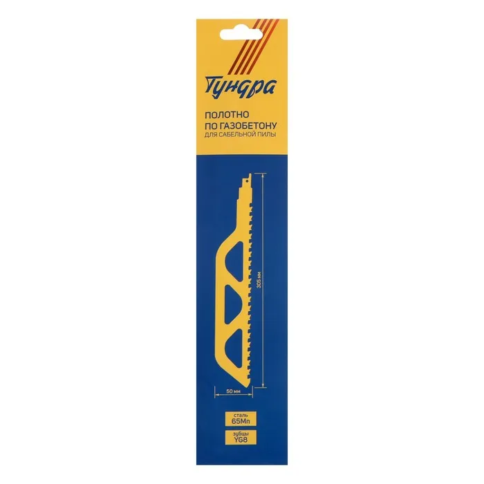 Полотно по газобетону для сабельной пилы ТУНДРА, сталь 65Mn, зубцы YG8, 305×50×1.5 мм — Характеристики