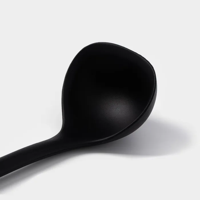 - Форма половника подойдёт для супа, каши, бульона, компота и прочих жидких блюд, а длинная ручка позволяет доставать продукты из самых глубоких кастрюль и других емкостей.