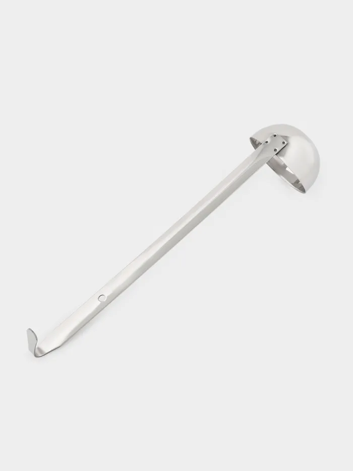 Половник - Изготовленный из высококачественной нержавеющей стали, этот половник долговечен и устойчив к коррозии. Удобная ручка с петлёй для подвешивания обеспечивает надёжность и комфорт во время использования. Благодаря своим характеристикам и доступной цене, этот половник станет вашим верным помощником на кухне.
