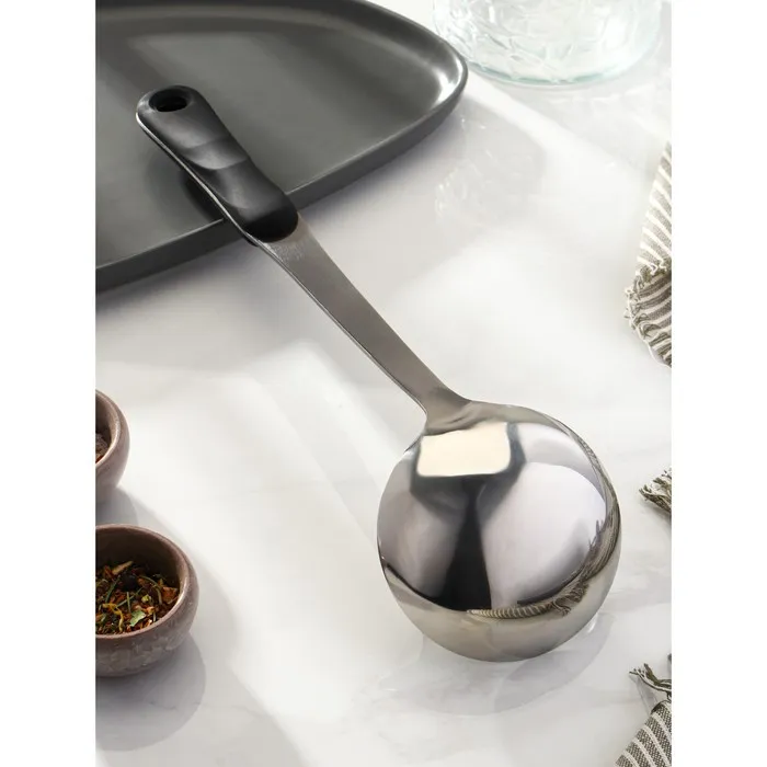 Половник из нержавеющей стали — Благодаря удобной ручке и качественному материалу, этот половник не скользит в руке и не деформируется при использовании. Он подходит для любых типов кастрюль и сковородок, а также для сервировки стола.