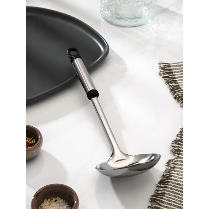 Половник из нержавеющей стали «Помощник» от Доляна — идеальный выбор для вашей кухни! Благодаря стильному дизайну и удобству использования этот аксессуар станет незаменимым помощником в приготовлении пищи. Прочная нержавеющая сталь гарантирует долгий срок службы и устойчивость к коррозии. Ручка половника оснащена петлёй для удобного хранения, а сам аксессуар можно мыть в посудомоечной машине.