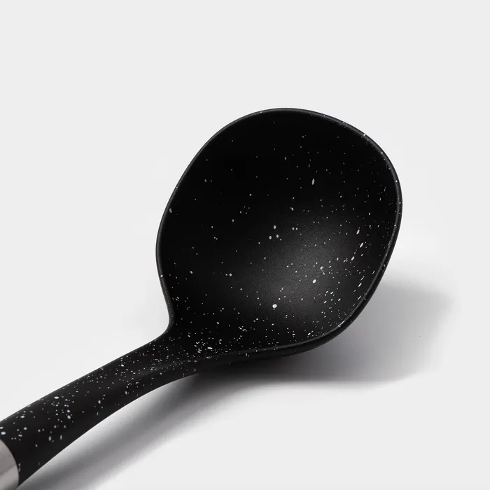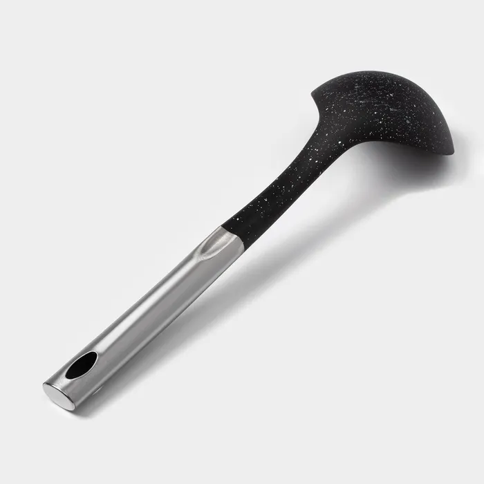 - Форма половника подойдёт для супа, каши, бульона, компота и прочих жидких блюд, а длинная ручка позволяет доставать продукты из самых глубоких кастрюль и других емкостей.