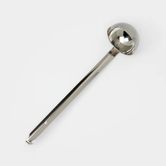 Половник - Изготовленный из высококачественной нержавеющей стали, этот половник долговечен и устойчив к коррозии. Удобная ручка с петлёй для подвешивания обеспечивает надёжность и комфорт во время использования. Благодаря своим характеристикам и доступной цене, этот половник станет вашим верным помощником на кухне.