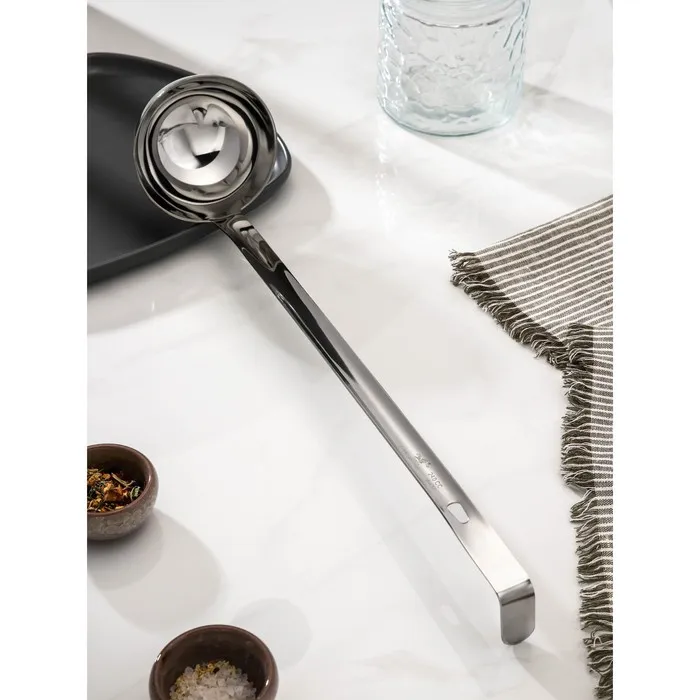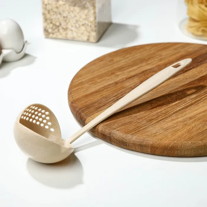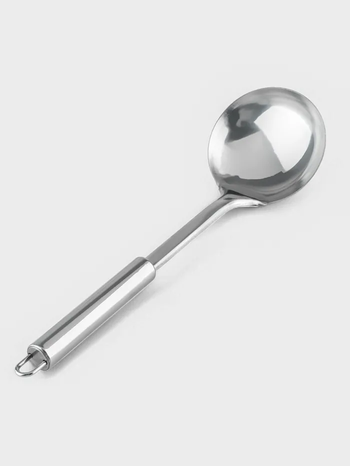 - Форма половника подойдёт для супа, каши, бульона, компота и прочих жидких блюд, а длинная ручка позволяет доставать продукты из самых глубоких кастрюль и других емкостей.