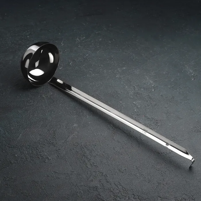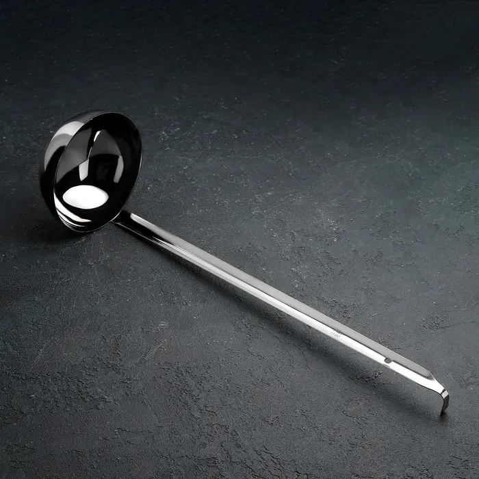 • Форма половника подойдёт для супа, каши, бульона, компота и прочих жидких блюд, а длинная ручка позволяет доставать продукты из самых глубоких кастрюль и других емкостей.