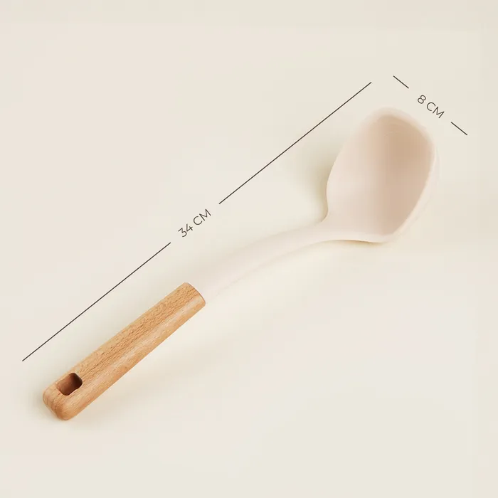 - Экологичные материалы: силиконовая рабочая часть и деревянная ручка делают этот половник безопасным для здоровья и окружающей среды.