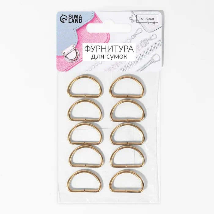 Золотистые полукольца — универсальная фурнитура для ремонта и создания аксессуаров. В наборе 10 штук: хватит на несколько проектов или про запас. Удобный размер 20 мм подходит для большинства сумок и рюкзаков.