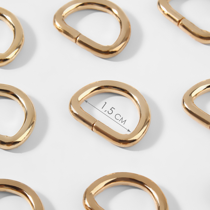Полукольцо для сумок, d=15 мм, толщина - 3 мм, 10 шт., цвет золотой