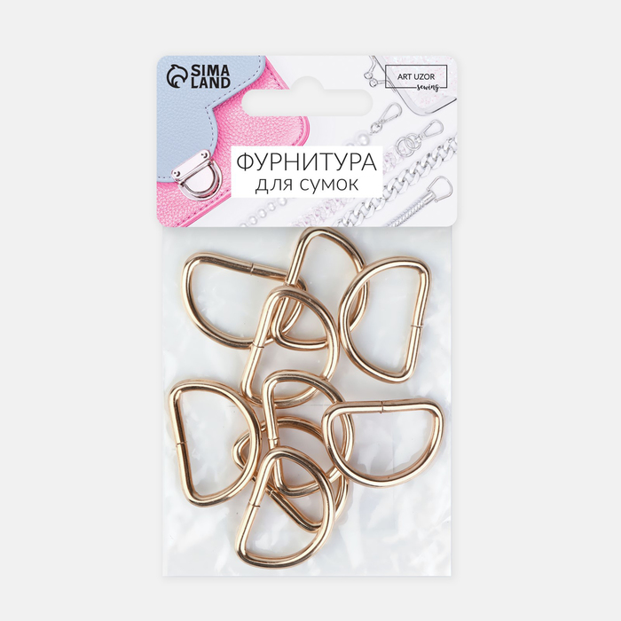 Золотые полукольца Арт Узор — прочная фурнитура для создания стильных аксессуаров. В наборе 10 штук диаметром 25 мм — оптимальный вариант для работы с сумками и рюкзаками среднего размера.