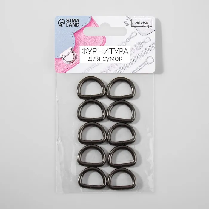 Компактные полукольца Арт Узор в классическом цвете чёрный никель — практичное решение для повседневного ремонта аксессуаров. В наборе 10 штук диаметром 15 мм — оптимальный вариант для работы с небольшими сумками и кошельками.