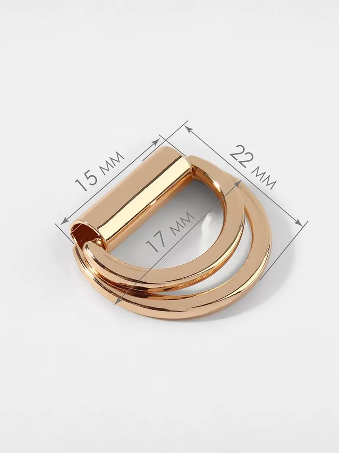 Двойные полукольца золотистого цвета — аккуратная и функциональная фурнитура для сумок, клатчей и текстильных аксессуаров. В наборе 2 штуки — достаточно для крепления ручек, брелоков или декоративных элементов.