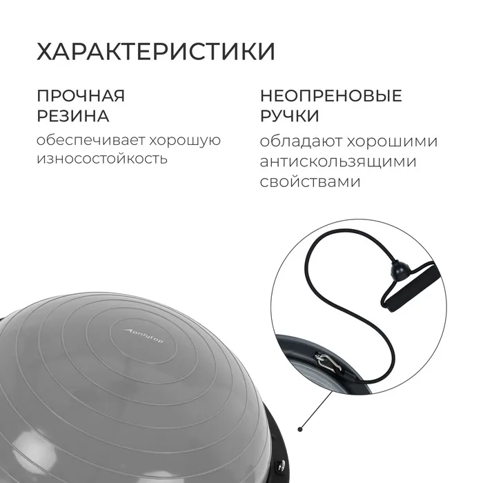 Полусфера BOSU гимнастическая ONLYTOP, с насосом, 58×25 см, серая — Характеристики