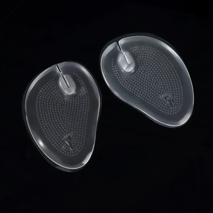 При продольном плоскостопии силиконовые полустельки значительно улучшают состояние ног. Благодаря изделиям стопа находится в естественном положении, нагрузка распределяется равномерно, а нога не скользит даже в обуви на высоком каблуке. Протектор помогает дополнительно амортизировать стопу во время ходьбы.