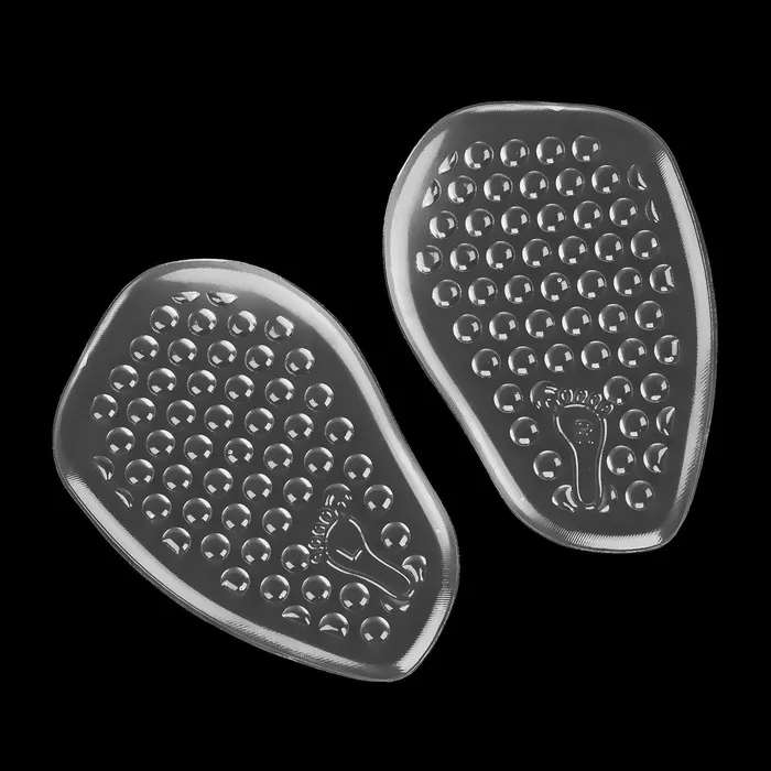 При продольном плоскостопии силиконовые полустельки значительно улучшают состояние ног. Благодаря изделиям стопа находится в естественном положении, нагрузка распределяется равномерно, а нога не скользит даже в обуви на высоком каблуке. Протектор помогает дополнительно амортизировать стопу во время ходьбы. Полустельки с протектором незаменимы, когда появляются сухие мозоли, натоптыши, пяточная шпора, повышенная утомляемость ног.