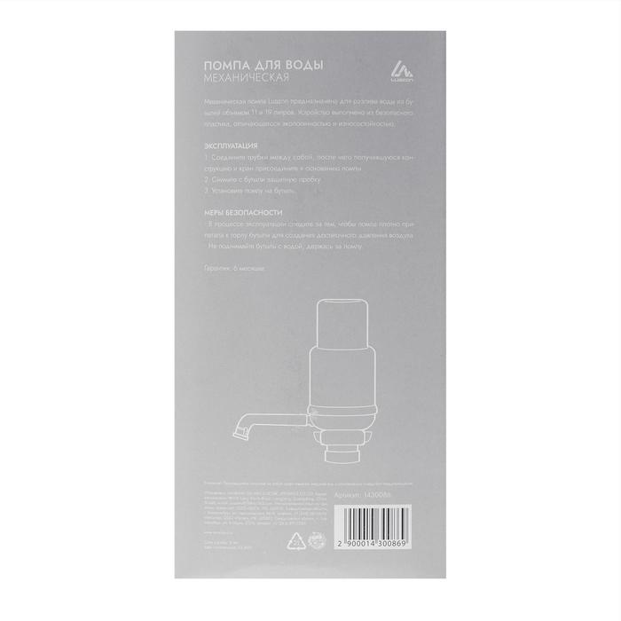 Помпа для воды Luazon, механическая, средняя, под бутыль от 11 до 19 л, голубая — Характеристики