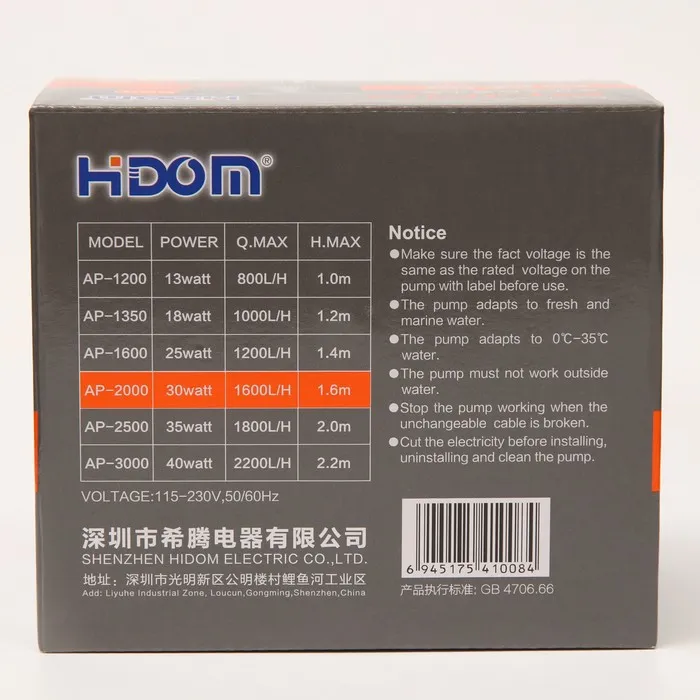 Помпа Hidom AP-2000, 1600 л/ч, 30 Вт, многуфункциональная 3 в 1 — Характеристики