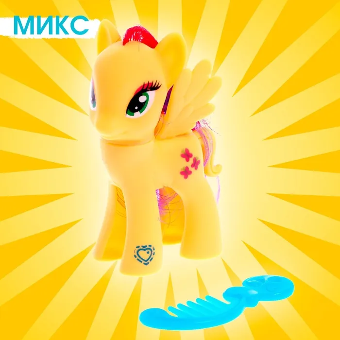 - Высота пони — 8 см. Игрушка очень компактная, поэтому её удобно захватить с собой на прогулку, в гости и даже в путешествие!