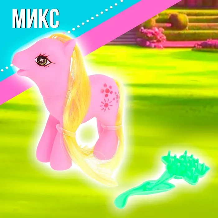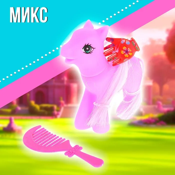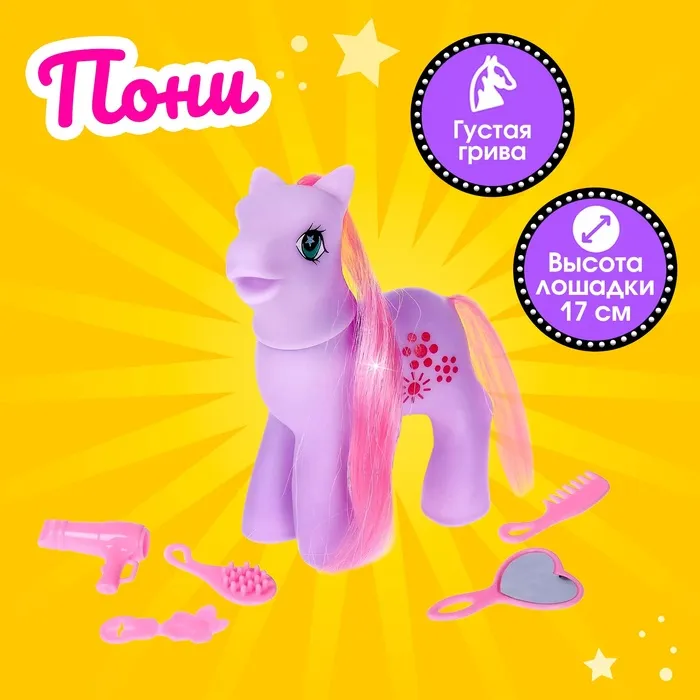 Малышка с удовольствием будет заботиться о пони, кормить её, водить на прогулку, купать, расчёсывать и укладывать спать.