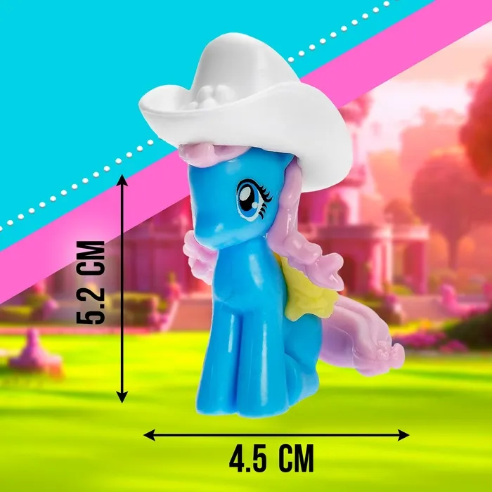 Эти яркие и милые пони в шляпах станут прекрасным дополнением к коллекции игрушек вашего ребёнка. Каждая фигурка изготовлена из универсального пластика и отличается высоким качеством исполнения.