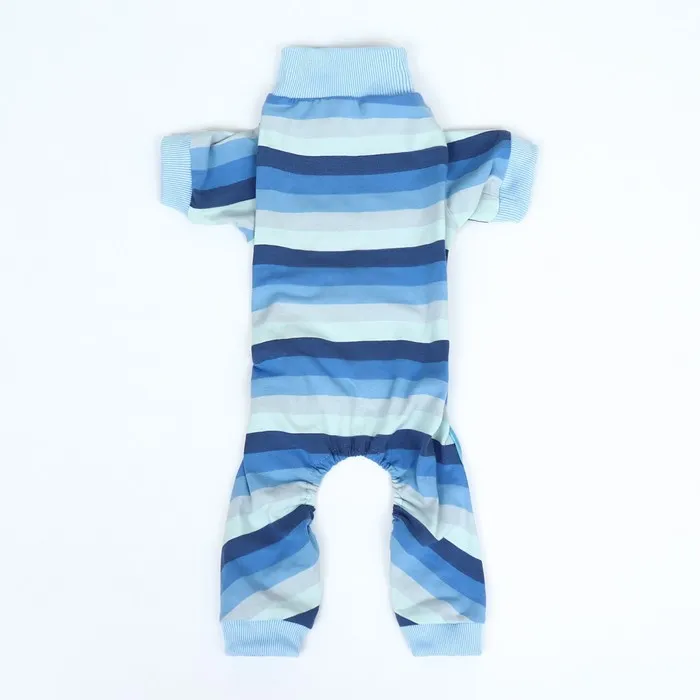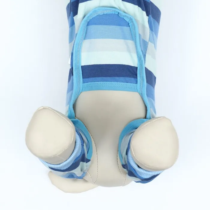 Попона послеоперационная выполнена из прочной вискозы, благодаря эластичности ткани попона плотно прилегает к туловищу питомца. Вискоза обладает гипоаллергенными и воздухопроницаемыми свойствами. что позволит вашему питомцу чувствовать в ней комфортно. Попона предназначена для использования после хирургических вмешательств. Эта мягкая и удобная попона обеспечивает комфорт и защиту после операции, предотвращая раздражения и защищая раны от возможных инфекций,вылизывания. Стильный дизайн с голубыми полосками делает ее яркой и удобной для использования в роли послеоперационного аксессуара. Она облечает процесс восстановления и обеспечивает животному необходимый уход и поддержку.