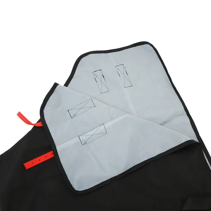 Попона имеет чёрный цвет, который легко сочетается с любым стилем одежды и аксессуарами. Ремешки позволяют регулировать размер попоны в зависимости от размера вашего питомца, обеспечивая идеальную посадку. Эта попона идеально подходит для использования в прохладную погоду, во время прогулок, тренировок или просто для домашнего уюта. Она защитит вашего любимца от ветра, дождя и снега, сохраняя тепло и комфорт.