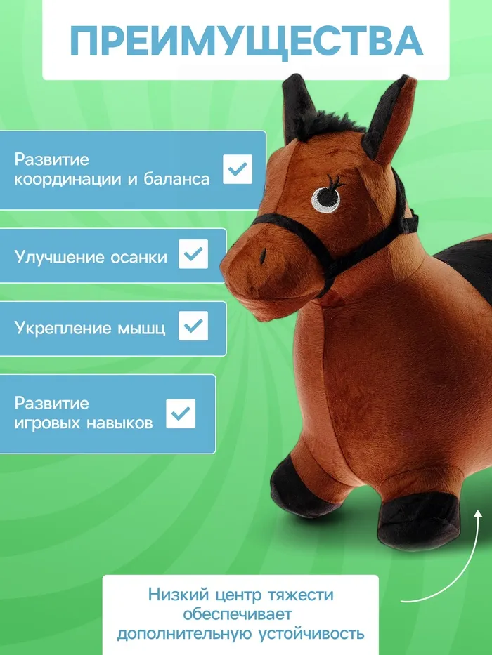 Эта игрушка станет отличным подарком для ребёнка, который любит активные игры. Благодаря своему дизайну и функциональности, лошадка-попрыгун поможет вашему малышу провести время с пользой и удовольствием.
