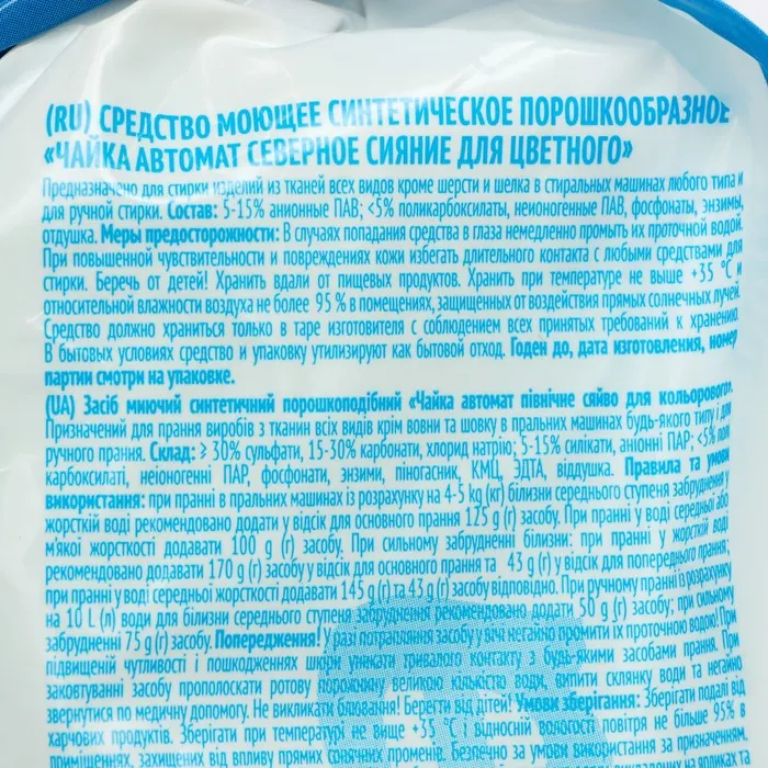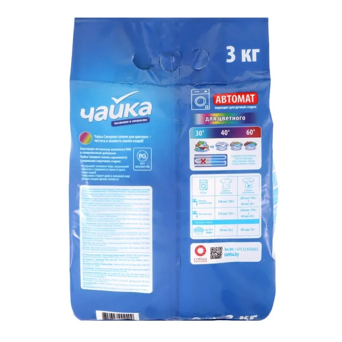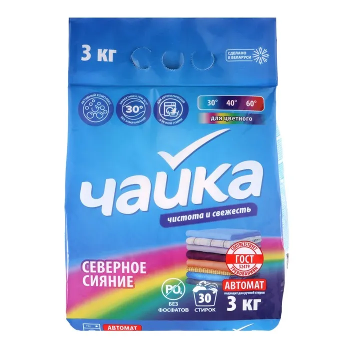 Порошок для стирки Чайка «Северное сияние», для цветного белья, автомат, 3 кг — Характеристики