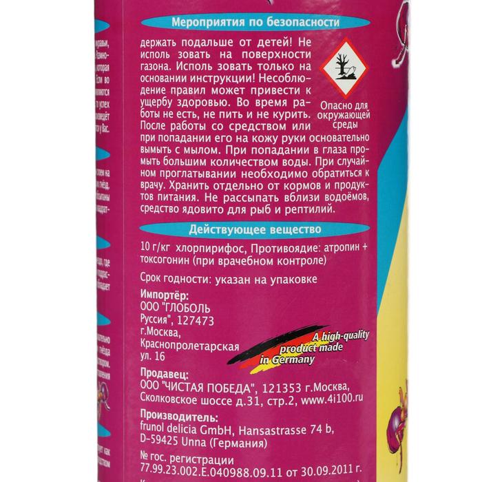 Туба DELICIA порошка против муравьев весом 500 г достаточно для обработки большой площади и поможет избавиться от муравьев надолго. Это экономичный и эффективный выбор для тех, кто хочет решить проблему с муравьями быстро и безопасно.